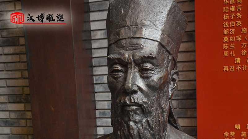 旅游地展出的王陽(yáng)明人物銅雕像展覽