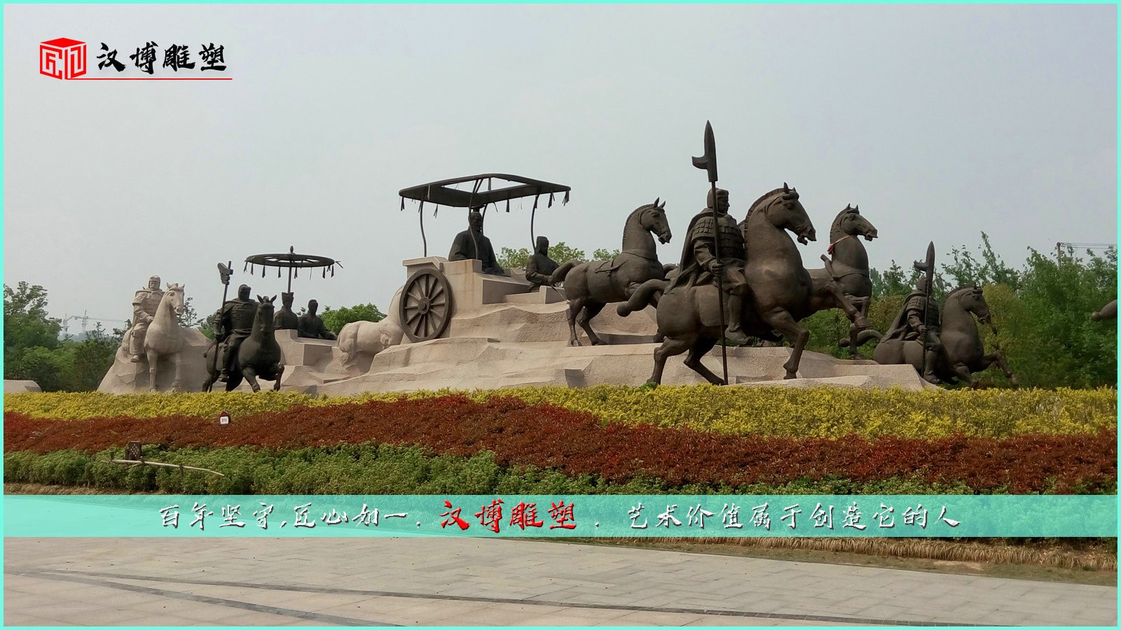 城市廣場安放的將軍出征主題雕塑展覽