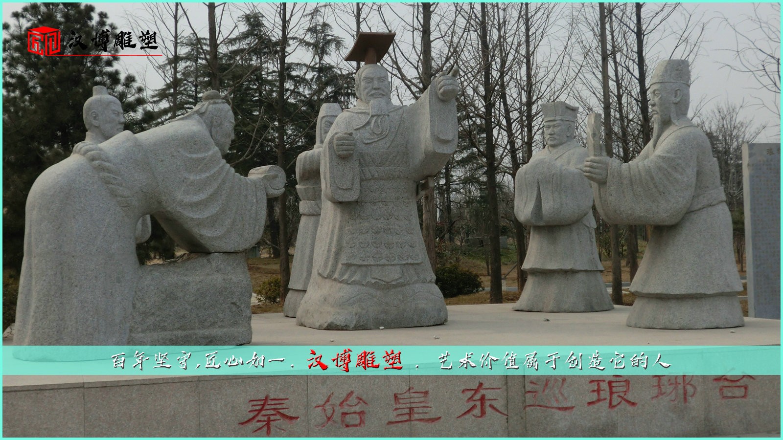 園林公園擺放的秦始皇東巡琳瑯臺主題雕塑欣賞
