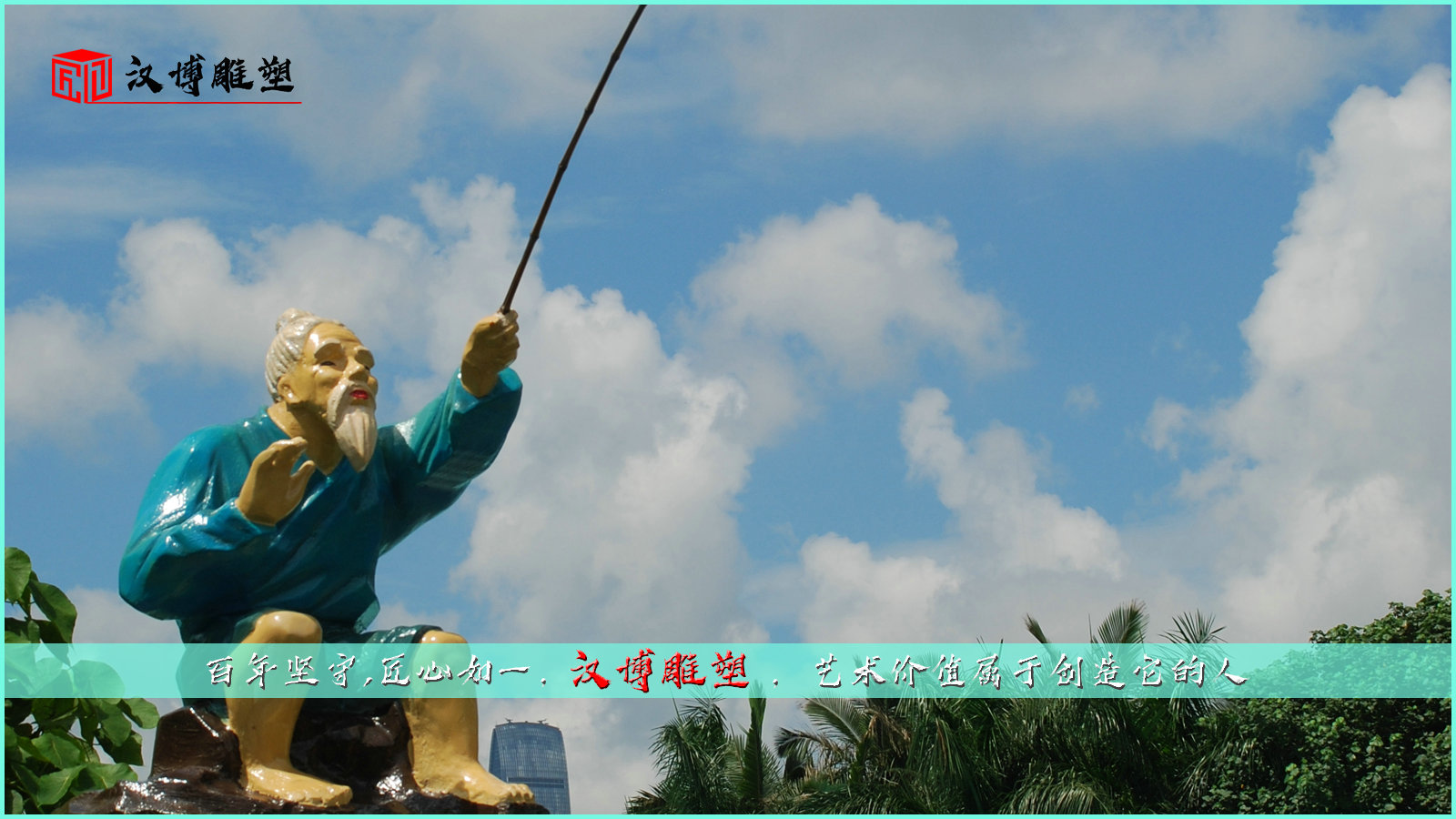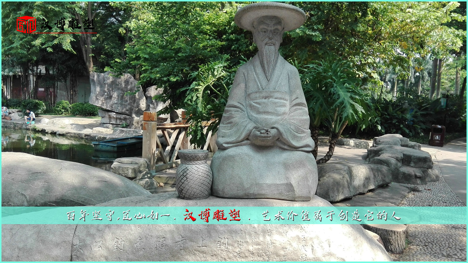 園林公園展出的人物垂釣情景主題雕塑作品展覽