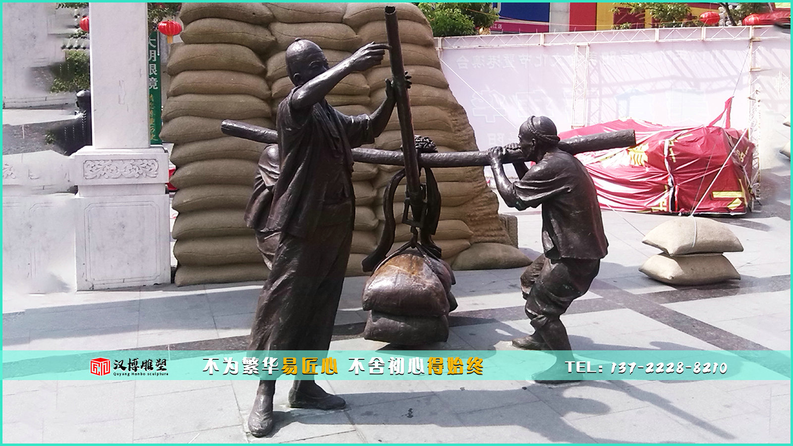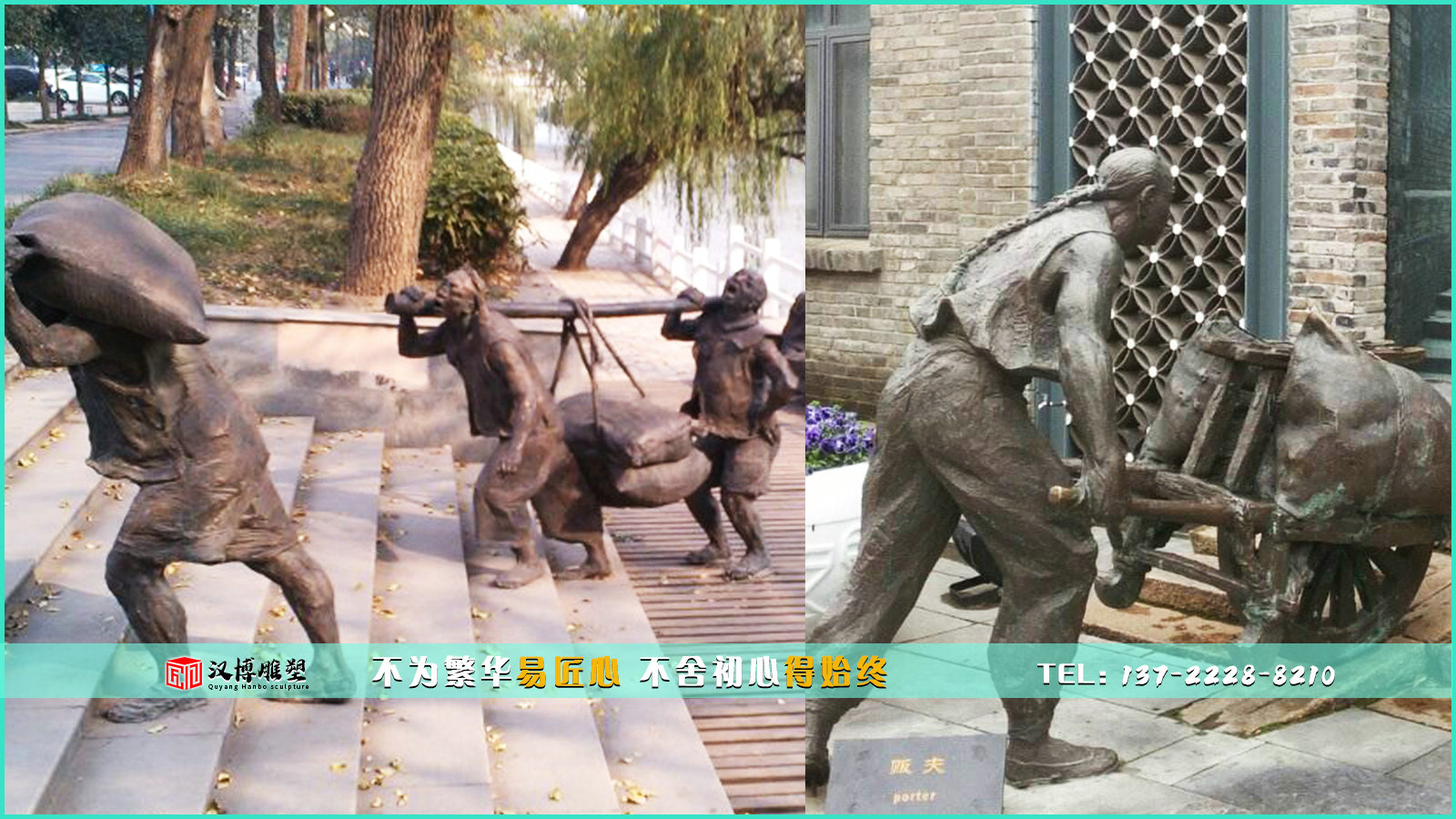 傳統(tǒng)工藝銅雕,搬運(yùn)工雕像,步行街雕塑